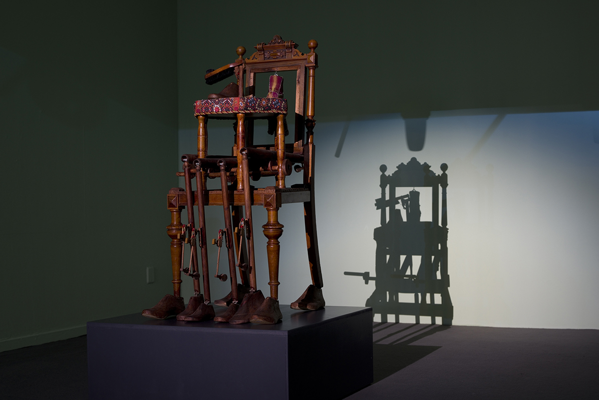 Wooden leg prosthetics sound machine for Disability History -project (Vammaisuuden vaiettu historia).